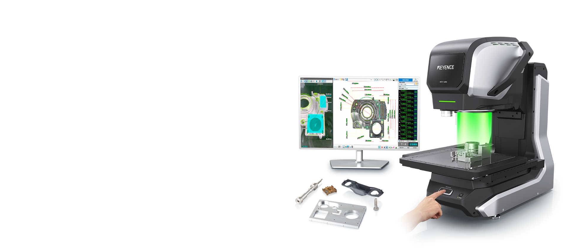 只需將產(chǎn)品放上載物平臺並按下按鈕,即可瞬間完成尺寸量測?!溉我鈹[、按一下、瞬間量測」——影像尺寸測量儀再度進(jìn)化。透過自動(dòng)對焦與照明條件最佳化的「自動(dòng)完成設(shè)定」功能,任何人都能立即進(jìn)行高精度量測。全新搭載的圖面讀取功能更可直接從圖面中選擇量測項(xiàng)目,系統(tǒng)便會自動(dòng)完成所有設(shè)定。同時(shí),全新登場的500 mm大型載物平臺,讓量測範(fàn)圍從小型零件拓展至大型工件。使用全新一代影像尺寸測量儀,實(shí)現(xiàn)「快速」「簡單」「精準(zhǔn)」的尺寸量測。