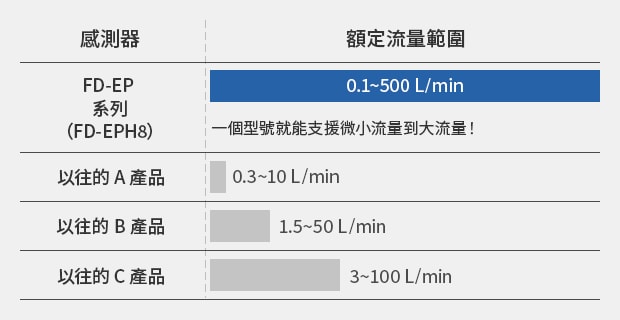 FD-EP 系列在小型機(jī)體內(nèi)內(nèi)建流量感測(cè)器與壓力感測(cè)器,可輕鬆診斷空壓元件的狀態(tài)。搭載專用應(yīng)用模式,可輕鬆實(shí)現(xiàn)氣缸、吸附搬運(yùn)、在席及吹氣的預(yù)防維護(hù)。即時(shí)捕捉並診斷空壓元件的狀態(tài)。還採(cǎi)用完全貫通結(jié)構(gòu),管道中沒有可能導(dǎo)致壓力損失或堵塞的突起物或障礙物。從微小流量到大流量皆可支援,僅需「選擇管徑」即可選型。顯示放大器搭載高解析度顯示器,無(wú)需操作手冊(cè)即可直觀操作。產(chǎn)品陣容還包括可減少安裝工時(shí)的裝設(shè)支架。氣缸前進(jìn)/後退、吸附搬運(yùn)中的吸附/真空破壞等會(huì)發(fā)生正向反向流動(dòng)的應(yīng)用案例也僅需一臺(tái)即可全部對(duì)應(yīng)。