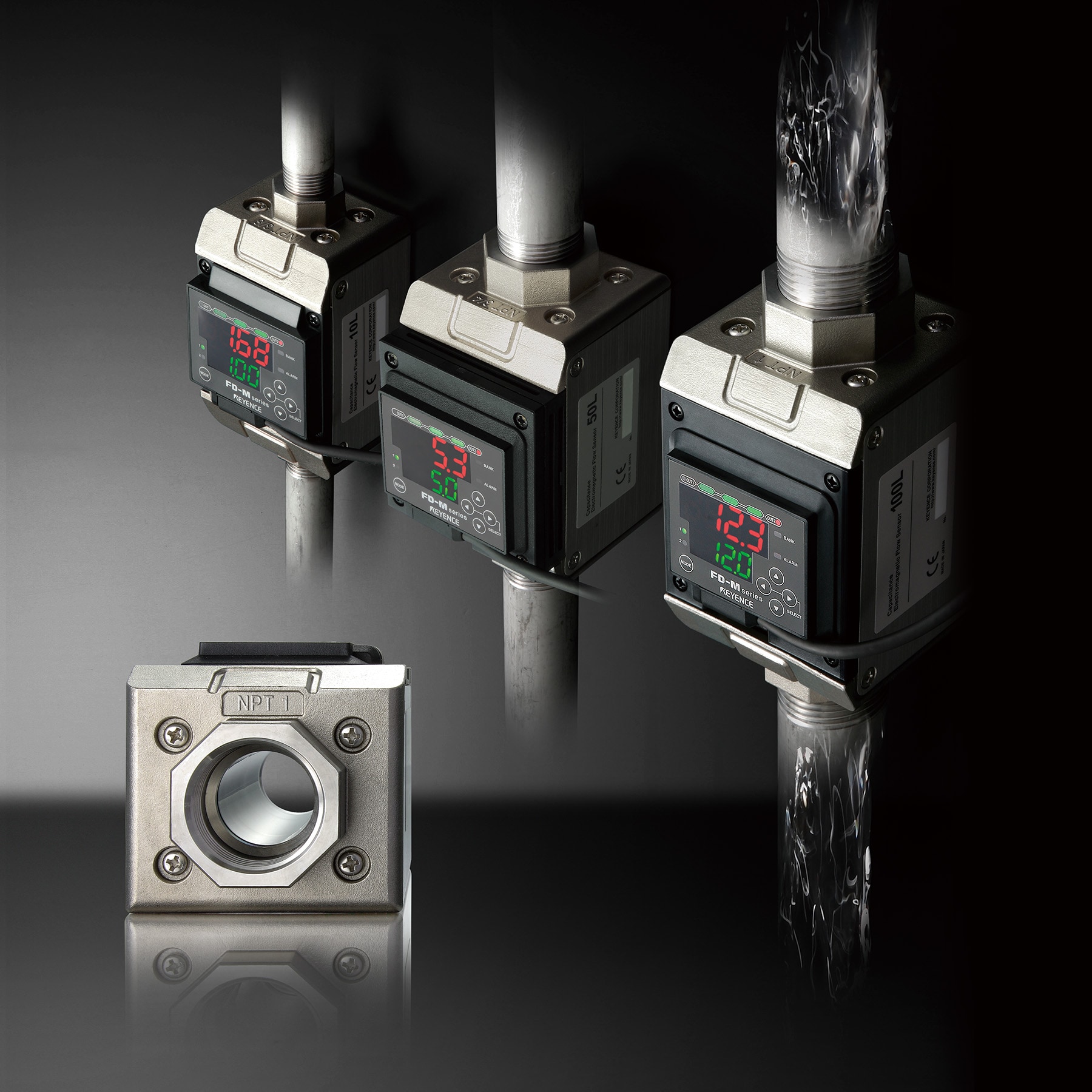 FD-M 系列使用法拉第定律量測導(dǎo)電液體的流量,並且透過靜電容形式從管道外部量測流量。以往的電磁式流量感測器則是採用與管內(nèi)液體接觸的電極,來檢測液體的電動勢。