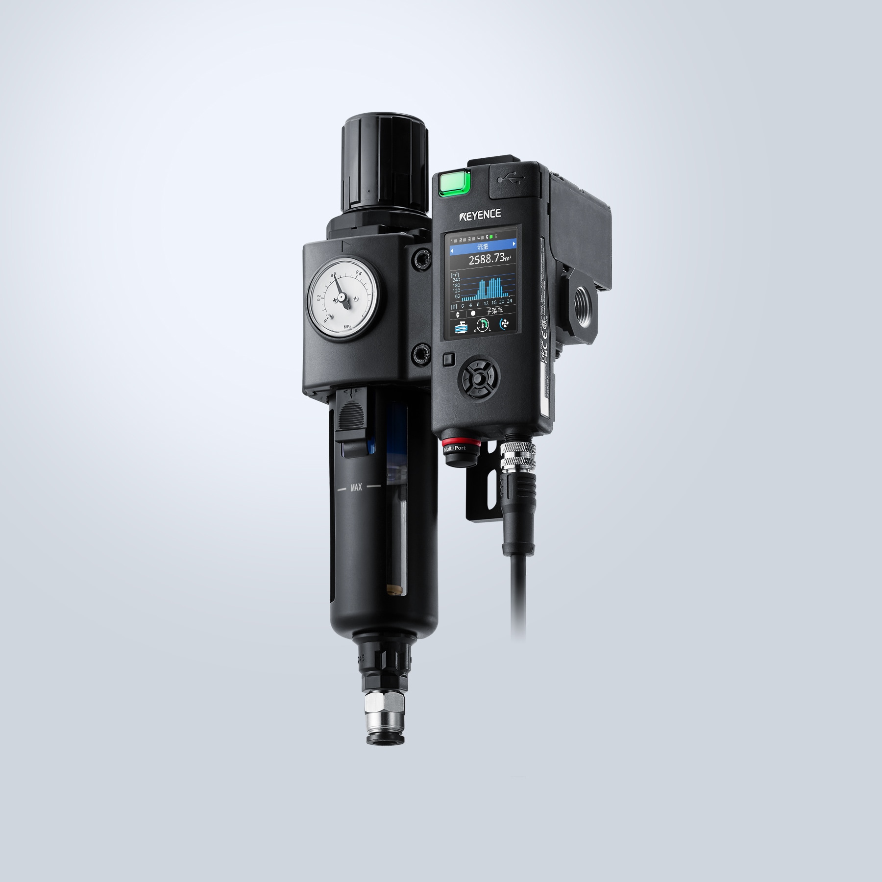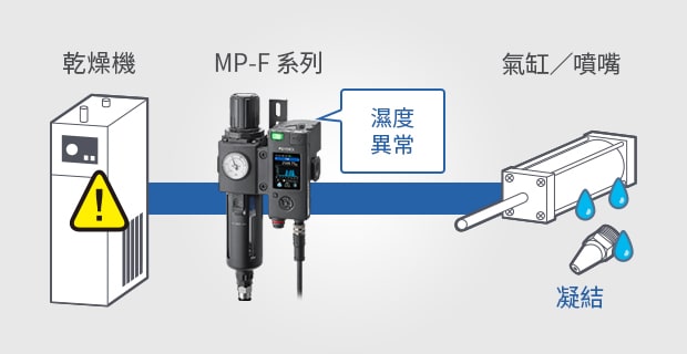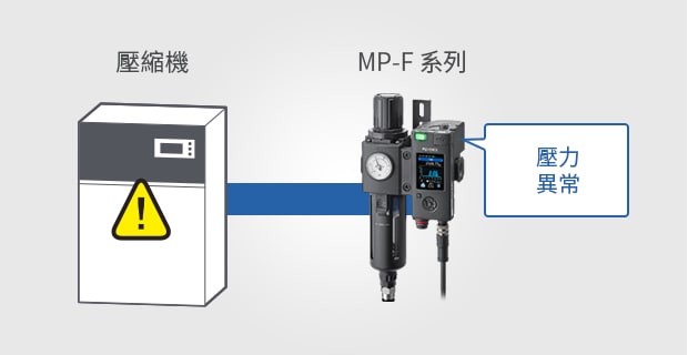 氣體用節(jié)能模組MP-F 系列可同時感測空氣流量、壓力、溫度及濕度,並可透過連接電能監(jiān)測器輕鬆實(shí)現(xiàn)裝置的能源用量可視化。搭載「全程記錄功能」,自動記錄作為節(jié)能活動重要資料的用氣量及用電量??稍诒憩F(xiàn)力豐富的多功能顯示器上確認(rèn)儲存的資料。此外還搭載截止閥,可在不使用裝置時截?cái)嗫諝猓瑴p少不必要的空氣消耗,實(shí)現(xiàn)以裝置為單位的節(jié)能效果。且還可監(jiān)控空氣狀態(tài),提前檢測因壓力降低或凝結(jié)而引起的故障,並通知異常情況。