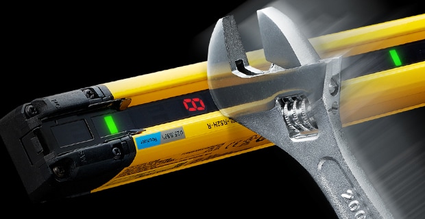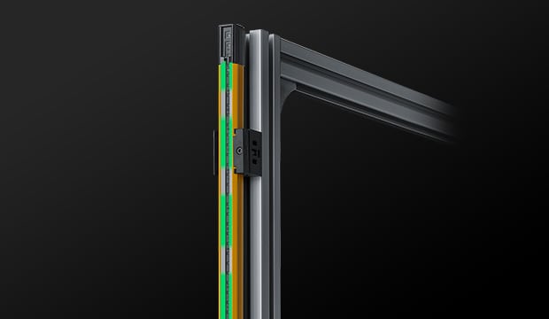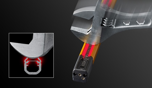 安全光柵GL-V 系列搭載大型線狀指示燈,僅靠本體即可清楚顯示狀態(tài)。當(dāng)入光時顯示綠色,遮光時顯示紅色,即使從遠(yuǎn)處也能一眼辨識光柵是否遮光,有助於迅速復(fù)原作業(yè)。此外,透過顯示模式還可確認(rèn)受光量降低或錯誤狀態(tài),便於及早採取對策。GL-V 系列可廣泛應(yīng)用於設(shè)備啟動、調(diào)整與運(yùn)轉(zhuǎn)階段。雖然尺寸僅為22 mm × 22 mm,卻具備約3 mm 厚的堅(jiān)固外殼結(jié)構(gòu),展現(xiàn)高耐用性。重新設(shè)計(jì)的內(nèi)部光學(xué)構(gòu)造更支援最長15 公尺的檢測距離。