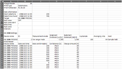 在靜電消除器的前後方安裝感測(cè)頭 SK-300,可依時(shí)序?qū)⒁蚰繕?biāo)物或環(huán)境變化而產(chǎn)生的靜電消除效果記錄於 PC 中。此功能在設(shè)備導(dǎo)入、生產(chǎn)線變更或定期檢查等作業(yè)的驗(yàn)證過程中,能發(fā)揮極大效用。