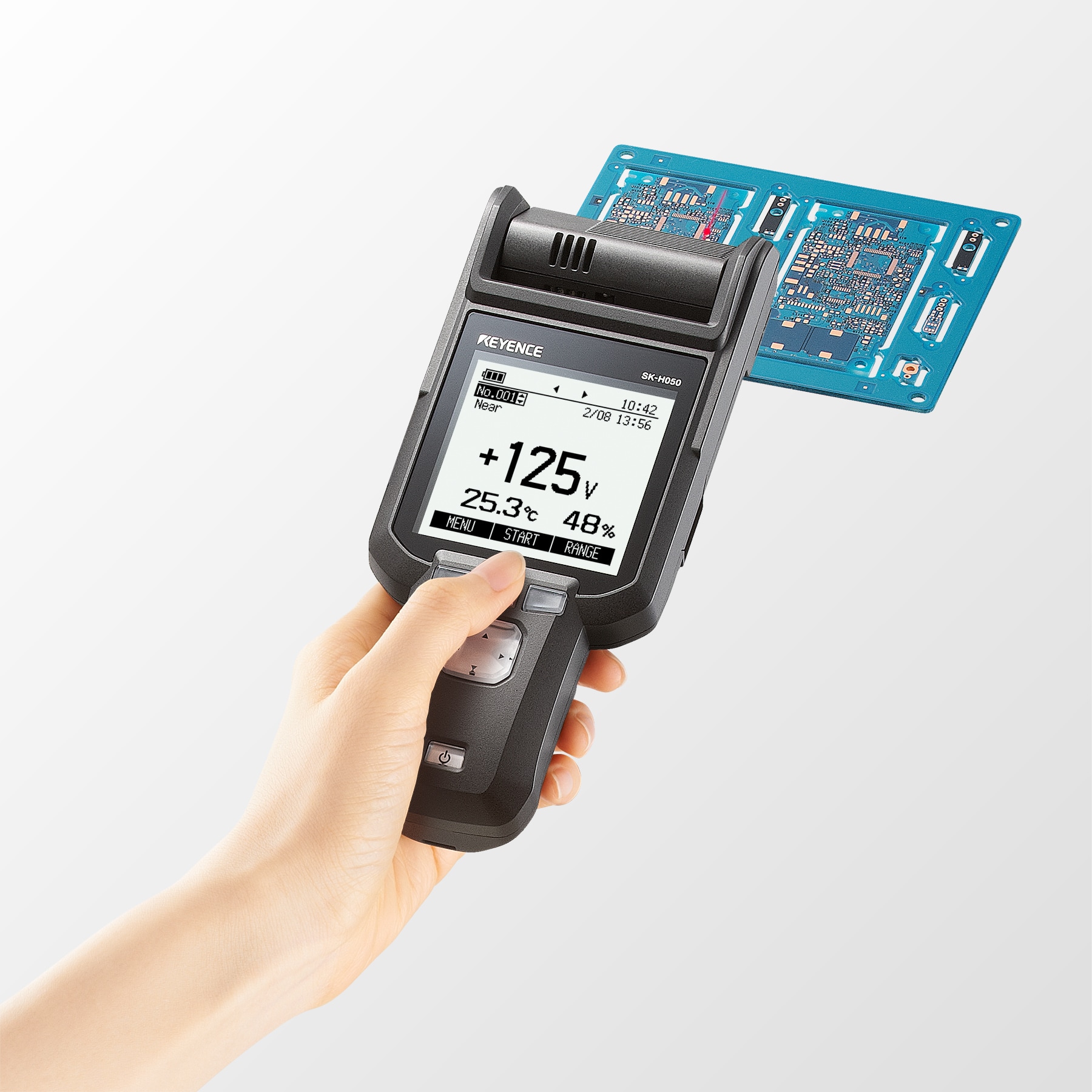 手持式靜電感測器作為入門型機(jī)種,廣泛應(yīng)用於將帶電狀態(tài)數(shù)值化的用途??赏瑫r(shí)量測溫度與濕度,綜觀環(huán)境條件與靜電之間的關(guān)聯(lián)。此外,亦能評估靜電消除器的靜電消除速度與離子平衡,藉此促進(jìn)其有效運(yùn)用與維護(hù),進(jìn)而預(yù)防靜電相關(guān)問題。手持式量測具備高度彈性,不受地點(diǎn)限制,能靈活因應(yīng)現(xiàn)場多樣化需求,這也是其一大優(yōu)點(diǎn)。