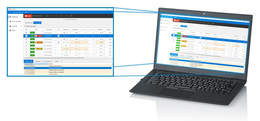 智能監(jiān)控靜電消除器「SJ-F700系列」將迄今為止靜電消除器所必須的定期維護實現(xiàn)了「全自動化」。不僅是電極針的清潔、電極針磨損所導致的更換、連靜電消除器的性能確認也不需人力即可自動應對。完全免維護,卻可持續(xù)維持同級最高的靜電消除性能(離子平衡±1 V、靜電消除速度0.5秒、靜電消除範圍3 m)。並且,將肉眼不可見的靜電數(shù)值化,在內(nèi)部記錄運行情況,讓原本模糊的靜電對策更加確實可靠。無須操作,即可持續(xù)確實消除靜電。SJ-F700系列是可以有效作為靜電破壞(ESD)、異物附著等靜電問題對策的靜電消除風扇。