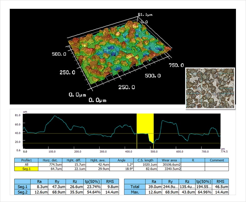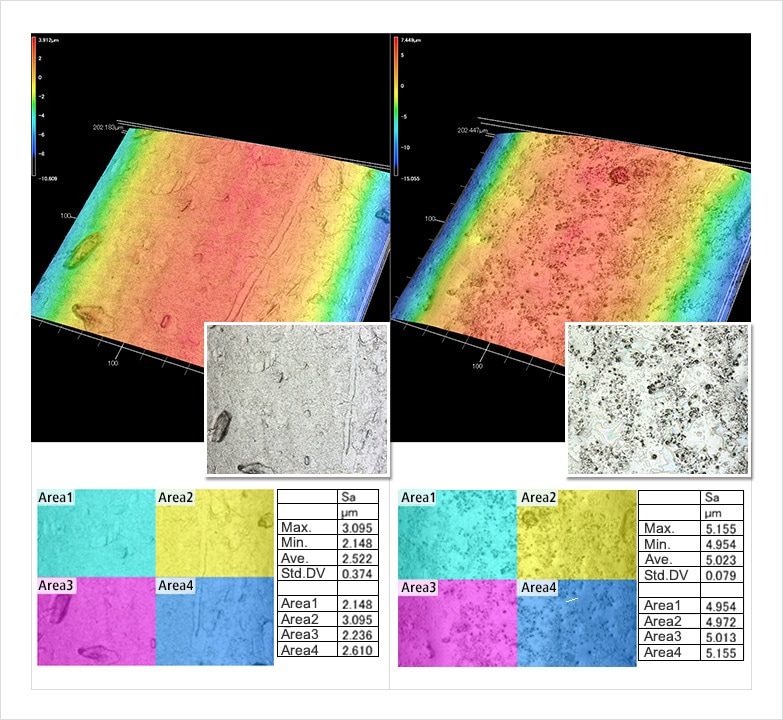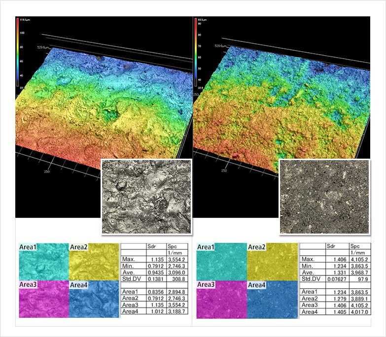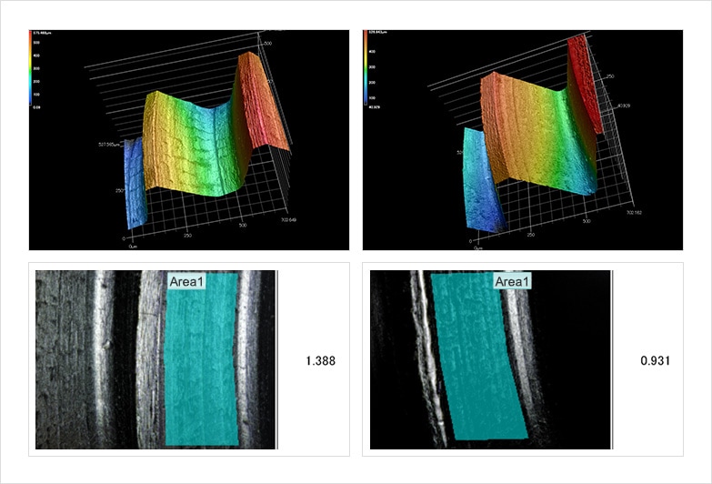 比較不同加工方法產生的表面性狀變化??梢杂肧a/Sz看出成品的狀況,用Str看出加工痕跡如何表現在外觀上。