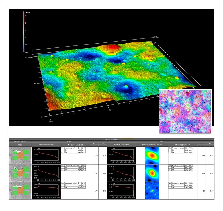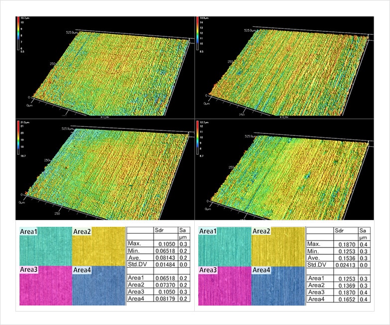 定量化因為金屬加工法產生的差異 Sa(算術平均高度)/Sz(最大高度)/Str(表面性狀長寬比)