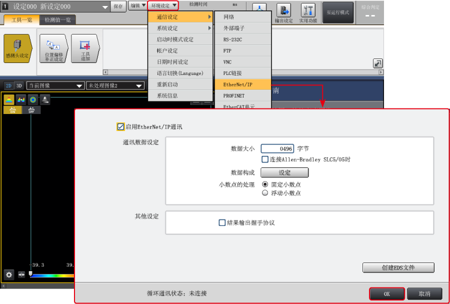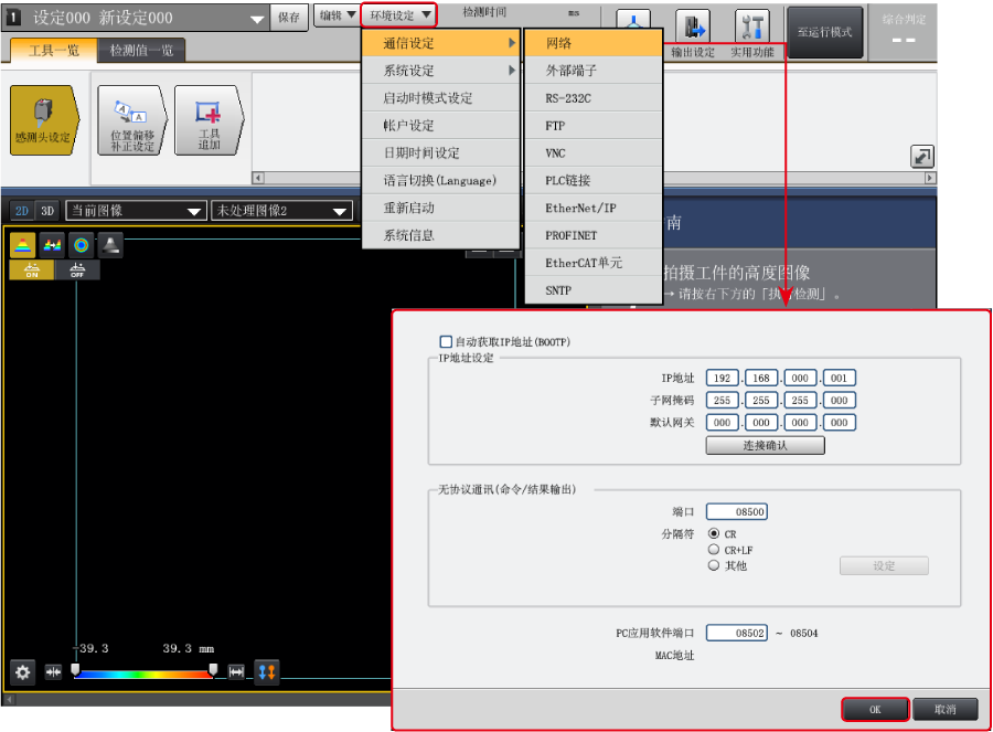LJ-S8000 系列可透過 EtherNet/IP 輸出結(jié)果資料 (測量結(jié)果、判定結(jié)果等)。此外,也可以使用指令由PLC進(jìn)行觸發(fā),或切換檢測設(shè)定。