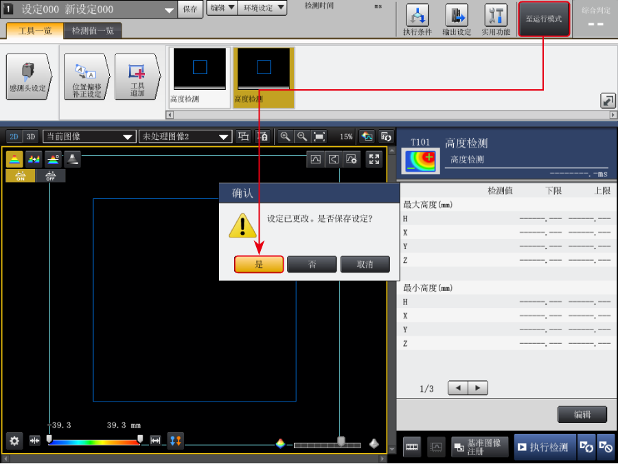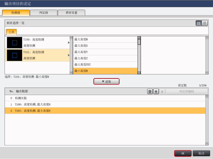 輸入以下數(shù)值。(把工具編號(hào)100的高度測量的最大高度H的上限值設(shè)定為1.234mm)