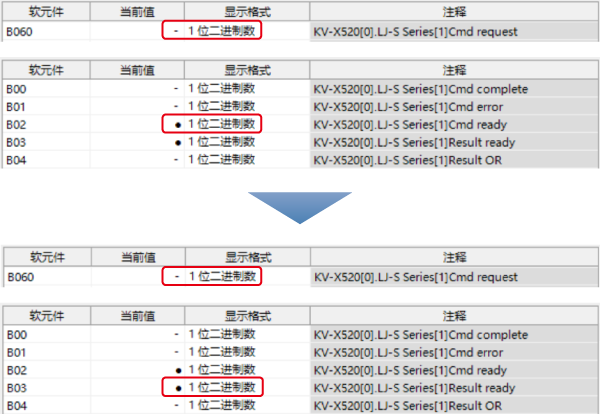 以下是循環(huán)通訊資料的分配狀態(tài),與本系統(tǒng) (LJ-S8000 系列) 接收/傳送資料的「一覽顯示」中可確認(rèn)的內(nèi)容相同。
