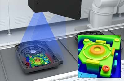 3D 檢查解決了因多樣少量生產(chǎn)而難以實(shí)現(xiàn)檢查設(shè)備統(tǒng)一化以及生產(chǎn)線檢查自動(dòng)化的挑戰(zhàn),成功節(jié)省工時(shí)。 透過位置補(bǔ)正功能,無論目標(biāo)物的角度如何,只需輕輕一放即可在量測(cè)範(fàn)圍內(nèi)進(jìn)行檢查。