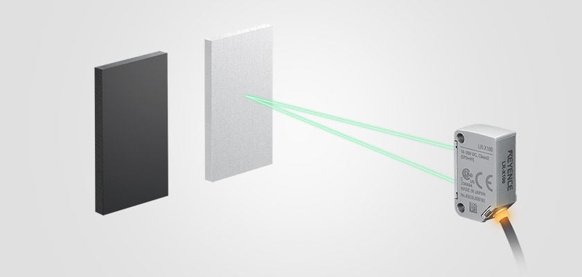 LR-X 系列針對(duì)至目標(biāo)物的距離進(jìn)行檢測(cè),而非檢測(cè)受光量。標(biāo)準(zhǔn)檢測(cè)段差最小為0.5 mm,也可支援薄形工件檢測(cè)。此外透過(guò)最大300 萬(wàn)倍的高動(dòng)態(tài)範(fàn)圍,可不受目標(biāo)物顏色與形狀影響,穩(wěn)定檢測(cè)。